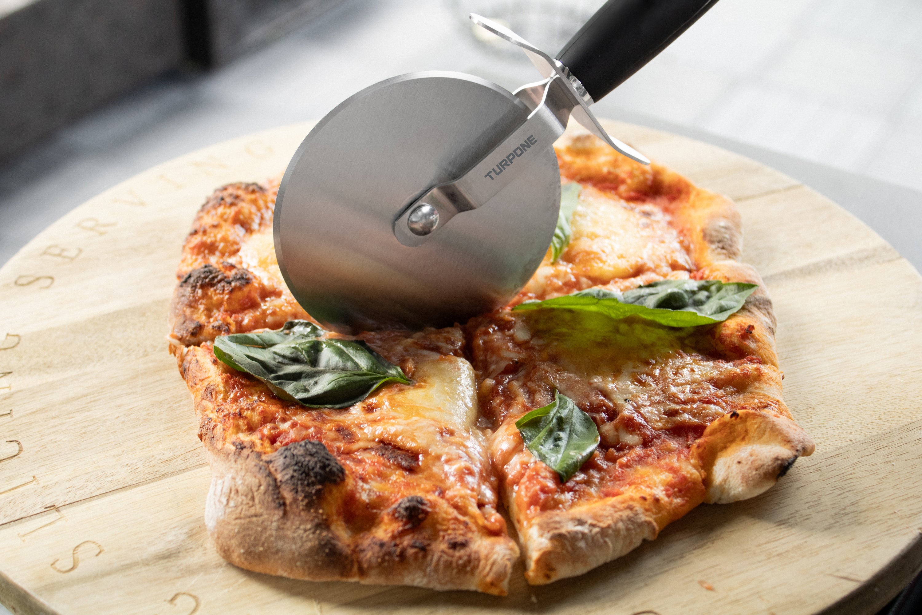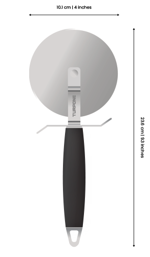 Cut through your favorite pizzas with ease using the Turpone Rolling Pizza Cutter, crafted for precision, comfort, and lasting durability. The 4-inch stainless-steel wheel features a sharpened beveled edge with a double-grind design that slices cleanly through crusts, toppings, and cheese in a single motion. A soft-touch silicone handle provides superior grip and balance, giving you full control with every slice. Measuring 9.3 inches long and weighing just 154 grams, this cutter feels sturdy yet comfortable in hand. Dishwasher safe and built to last, it’s the perfect companion for effortless, professional-quality pizza nights.